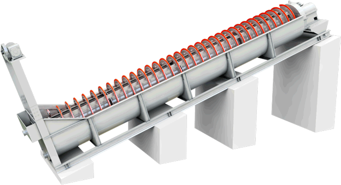 专业设计的导料板和可调式长溢流堰板,配合经过优化的螺旋速度,使物料 的洗选、分级的更加精准